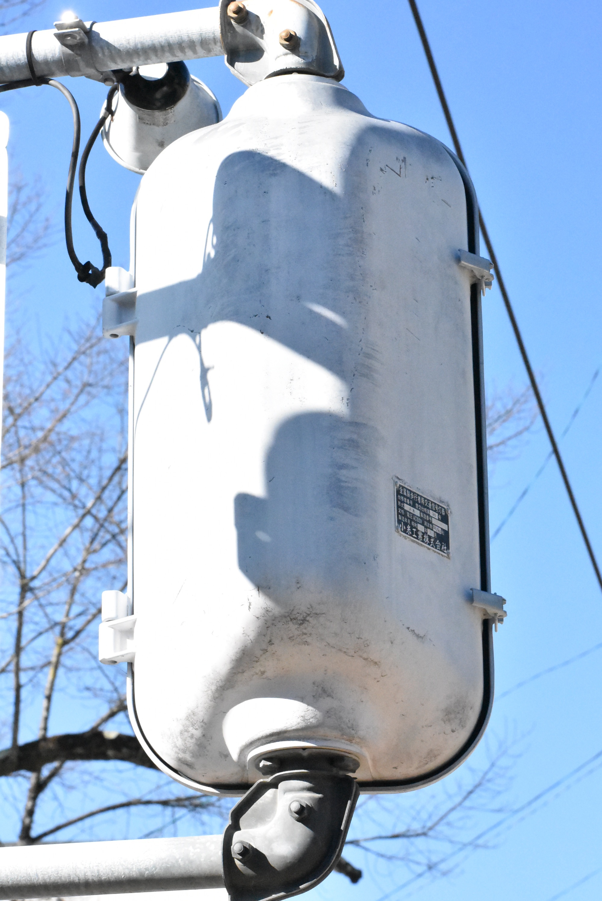 | ◆コメント 京三丸形ブロンズレンズ250mmと同じ交差点に設置されていた古いおにぎり歩灯。 初代と比べてレンズは網目状になり消灯時の人形がぼやけています。 点灯時は縦線が無数に現れるの特徴です。 また、フードは初代が鉄製で二代目はアルミに変更され錆びることがなくなりました。 同世代の京三弁当箱はあまり残っていなかったのに対し、このタイプは比較的県内では近年まで多く残っていた印象があります。 おそらく鉄製で劣化の進んだ京三弁当箱が早い段階で撤去され、アルミ製で状態の良い小糸おにぎりが残る結果となったのでしょう。 |
