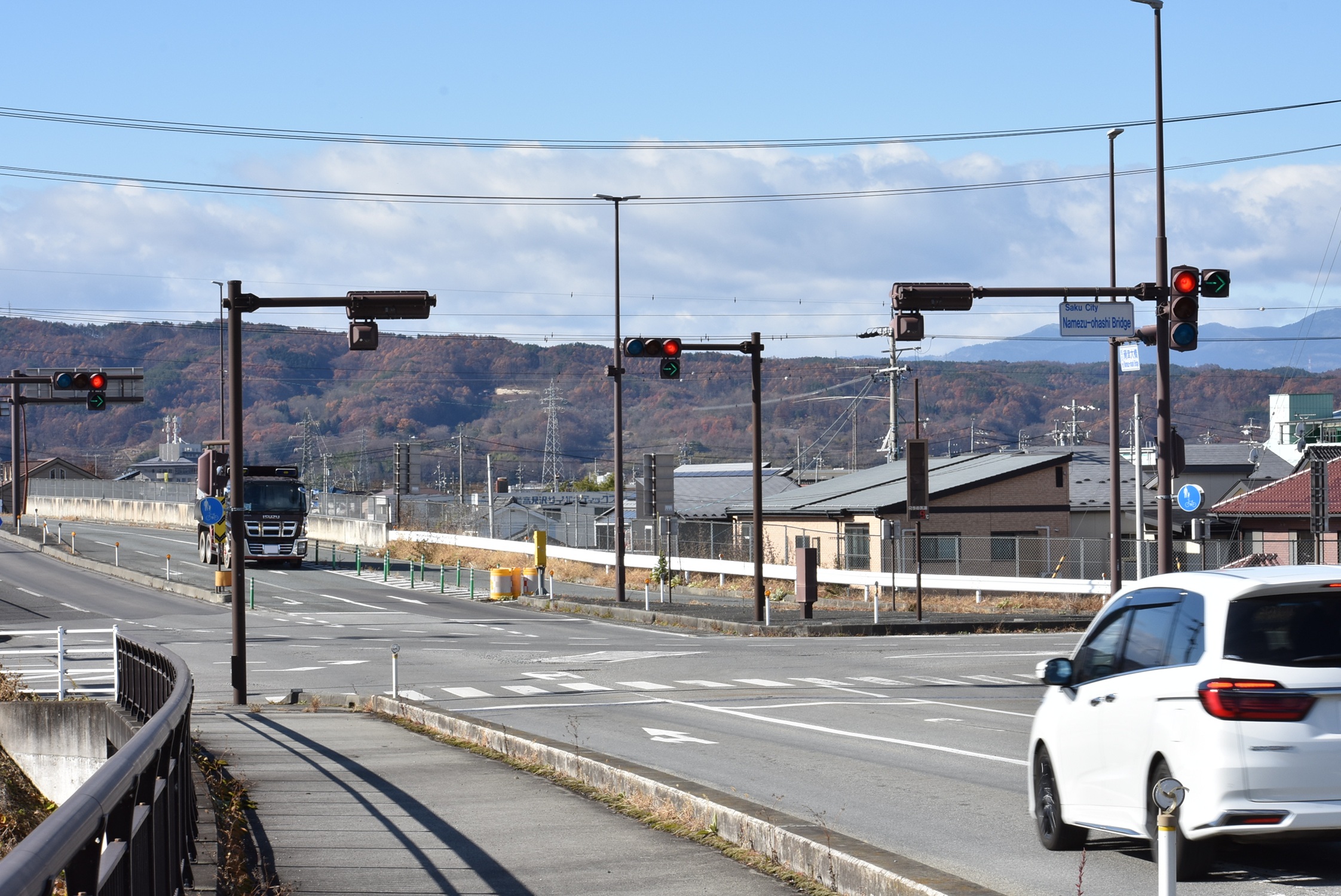 | ◆コメント 幹線道路同士が交わる大きな交差点に設置されていました。 オール京三オマルの電球式です。撮影時はまだ県内数ヶ所に残っていましたが、現在はほぼ撤去されています。 矢印灯器が付いていますが何とこちらも電球式。設置当初から矢印付きみたいです。 この手の灯器は三位灯は電球で矢印はLEDというケースが多かったので、両方とも電球なのは非常にレアケース。 オマルの電球矢印はここ以外に上田市で確認していますが、残っているかは不明。 三位灯はスフェリカルレンズですが、矢印のレンズは従来のブツブツレンズです。 矢印には西日対策は不要ということでしょうか? 矢印の取付金具は隙間のあるものになっています。 北行と西行には補助灯器で縦形も設置されていました。 |