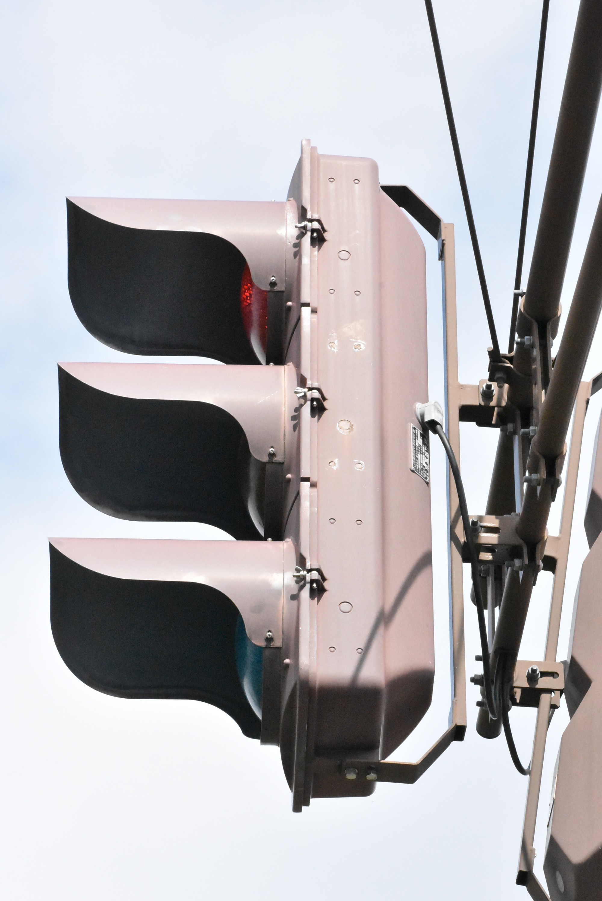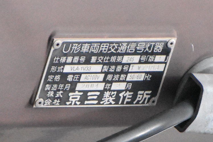 | ◆コメント こちらの交差点に1基だけ設置されていました。おそらく後年になって増灯したのでしょう。 京三VLA(所謂オマル)の電球式灯器です。 オマルのLED式はかなりの数残存していますが、電球式はそもそも設置数が少ないうえ淘汰が進んだ現在では壊滅状態です。 スフェリカルレンズという独特なパターンの西日対策レンズが使用されています。 長野県ではカマボコからオマルLEDに取って代わられるまでの間、標準的なレンズでした。 先代のカマボコより背面の凹凸が少なくなりシンプルになりました。 また、銘板の位置はカマボコは横型と縦型で異なりましたが、オマルは縦横共通の位置にあります。 ぱっと見横形を縦に設置しているのかと思いましたが、形式はしっかり縦を表す「V」になっています。 灯器の右側には矢印灯器を設置する際、穴を開けるための目印があります。 あらかじめ穴が開いておりゴムブッシングを外せば簡単に矢印の取付ができる同世代の小糸に比べ、 こちらは穴あけ加工が必要で取付が少々面倒なようです。 |